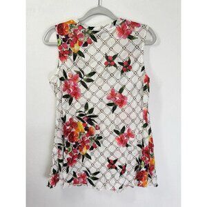 Sno Skins Sleeveless Crinkle Top Womens Medium White Pink Floral Scoop USA Made