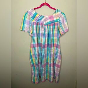 Vintage 80’s 90’s Colorful Plaid Cotton Midi Short Sleeve Dress Teacher sz Large