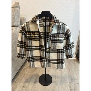Zara Kids Plaid Button-Up Shirt Jacket, Cream, Brown, Checkered Shacket