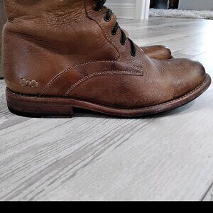 Bed Stu, Della, lace up, knee-high boots. (can also zip up)Tan, rustic & distressed. Genuine leather inside and out. Adjustable calf buckle. Size 9.5 Gently worn. Paid $315.00 new.