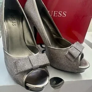 Guess Metallic Silver Heels with Stylish Bow
