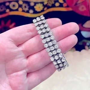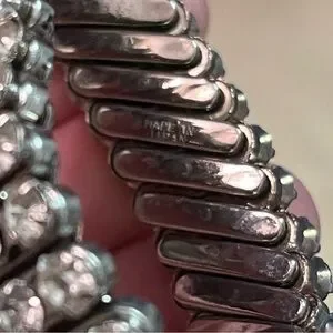 VTG MCM Retro Rhinestone Silver Tone Metal Costume Jewelry Stretchy Bracelet