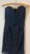 Elegant navy dress with strapless design. Features delicate lace detail. Ideal for special occasions.