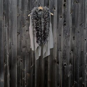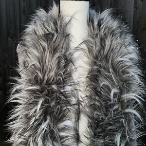 Elevate your style with this chic gray vest featuring luxurious faux fur trim with silver accents. Perfect for layering, this piece adds a touch of elegance to any outfit.