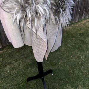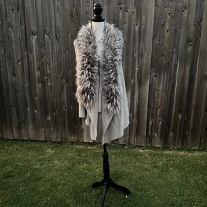 La Seine- Gray Faux Fur Trimmed Women's Cardigan Vest Cape EUC