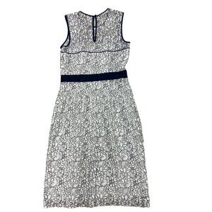Banana Republic Dress Women 2 Lace Sheath Sleeveless Round Neck Midi White Black