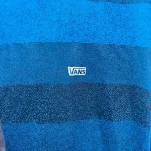Stylish and comfortable full zip hoodie from Vans, perfect for adding a cool, casual layer to your outfit. This long sleeve sweatshirt features a distinctive blue and black striped pattern, accented by solid black ribbing at the cuffs and hem, and a black hood. The hoodie also includes a convenient zippered front, a small Vans logo patch on the chest, and a cozy hood with adjustable drawstrings. Great for skateboarding, running errands, or simply lounging around on the weekend.