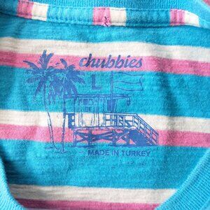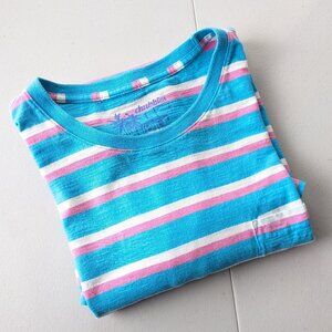Chubbies Pink, White & Aqua striped t-shirt, front pocket, short sleeve -- such great colors!