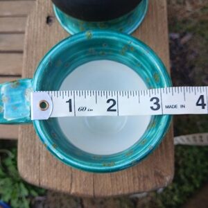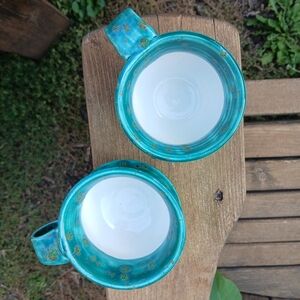 Beautiful handmade pottery mugs. Well crafted and lightweight with black matte and dappled green glaze. Skillfully made with quirky details. Each one is unique. The imperfections make them authentic and charming. One of kind set.