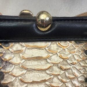 Stylish python-embossed satchel by Brahmin. Features a striking black and cream design. Perfect for adding elegance to any outfit.Perfect condition,wallet is new,never used .From smoke /pet free house. Measurement.-10”-W,6,5”H ,4”-D