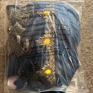 Stunning medieval-style dress in deep blue with gold trim. Ideal for themed events.