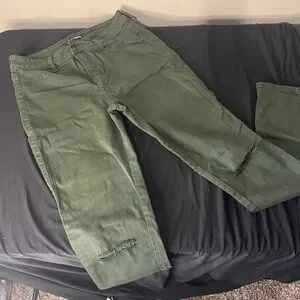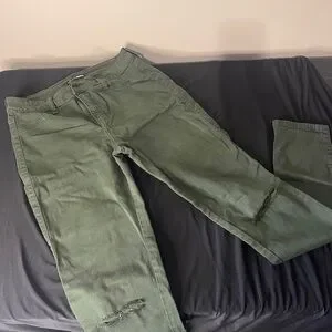 Olive green chinos with a modern fit. Durable fabric and stylish design. Ideal for casual wear. I have only worn a few times and still in great condition.