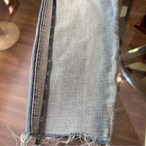 Bleached light wash jeans by Pistola. Cropped design with frayed hems. Perfect for casual wear. Please see pics for details and inseam measurement