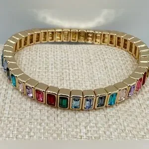 New never worn no tags stretch Elegant Multicolor Gemstone Bracelet gold toned