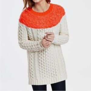 Boden Long Cream and Orange Cable Knit Sweater