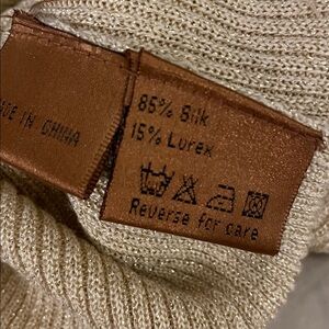 Gorgeous Belldini Light Gold Silk Metallic Sweater with Pearl Accents Size L