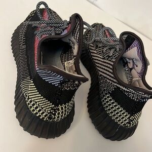 Mens 6.5 women’s 7.5 Adidas Yeezy Boost 350 v2 non reflective. FW5190. The inserts have some wear and curling up at heels / letters have been worn off ** price is reflective. Other than that these are in very good used condition. Please look at all pics and comment below with any questions before purchasing. Black yellow red blue beige white