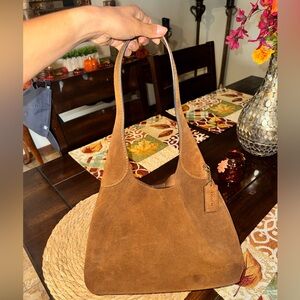 Coach 28 brown suede bag in warm brown. Ideal for elevating your style. Charms not included used for about 1 1/2 week but still in very good conditions it’s not dirty or anything it’s suede so it leaves like the touch marks on the bag