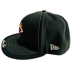 Miami Heat NBA New Era 59Fifty Black Fitted Hat Size 7.5 New With Tags MSRP 46