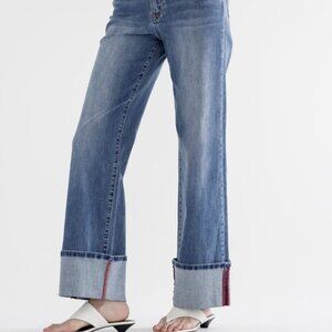 MICA-High Rise Wide Leg Jeans with Cuffed Hem