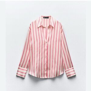 Zara -Satin effect shirt -Pink Striped Women's Top-size M