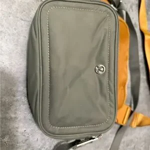 2-for-1: olive green crossbody bag and golden camel belt bag by lululemon athletica.