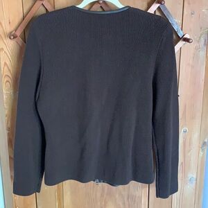 Classiques Entier brown ribbed wool jacket with front leather panel and dual front zipper closure. Long sleeves with leather trim along neckline. Excellent Condition