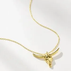 Our Fighter Necklace is a simple chain necklace with a longhorn pendant. This standout chain with pendant necklace is the perfect layering piece for when you need a little touch of country. Plus, this western necklace even comes in Sterling Silver. (Also available in my shop.)