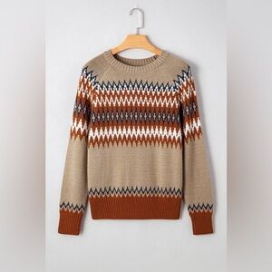 Aztec print sweater, western sweater, cowgirl style knitwear, fall layering sweater, boho chic pullover, rustic colorblock sweater, southwestern style sweater, cozy knit tops