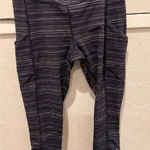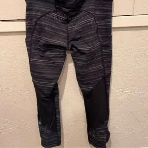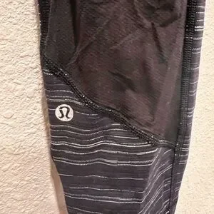 Lululemon. Like new, black with fine line detail. Back zipper for ID. Perfect for workouts or casual wear.