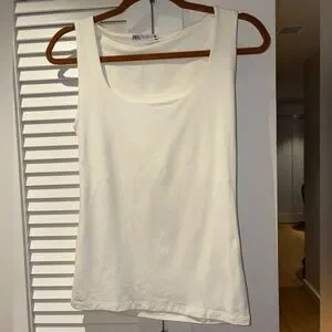 Chic and simple cream tank top by Zara. Ideal for layering or standalone wear. -Double lined -Size Medium