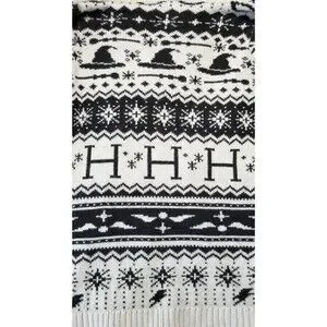 This gray and black fair isle cardigan features a Harry Potter pattern that includes Harry's glasses, his lightning bolt, stars, the Hogwarts H, and more.