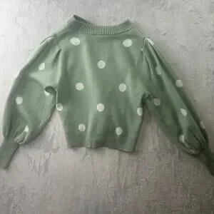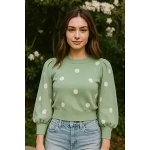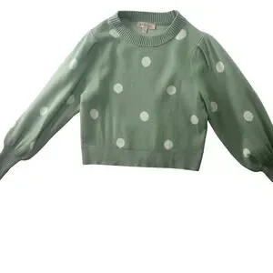 PHILOSOPHY Polka Dot Balloon Sleeve Sweater • Green & White • Size S • Crew Neck
