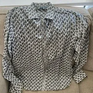 Elegant paisley design in black and white. Classic button-up style. Ideal for versatile wear.