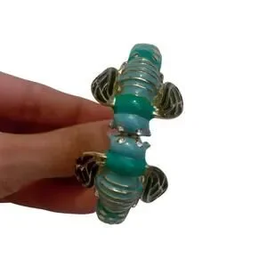 2/$30 Colorful Enamel Blue Green Gold Bug Bangle Bracelet Adjustable Eclectic