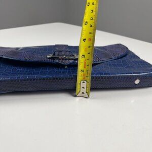 Get ready to make a statement with this stunning Blue White House Black Market clutch. Crafted from faux leather with an eye-catching animal print pattern, this small-sized bag is perfect for carrying your essentials in style. The clutch features a clasp closure, a fabric lining in matching blue, and measures 15 inches in width and 8 inches in height. Whether you're heading out for a night on the town or a special event, this elegant accessory is sure to turn heads.