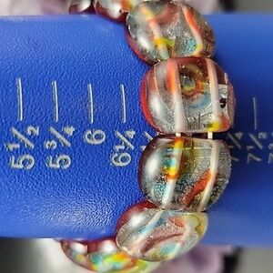 20x14.7mm Handmade Glass Abstract Milliefiori Lampwork Foil Beaded Bracelet