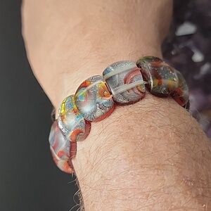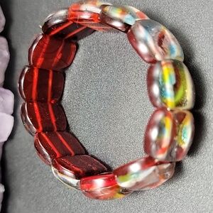 This elegant abstract, multi colored, glass beaded stretch bracelet adds a touch of sophistication to any outfit. Perfect for any occasion. Fits a 6" to 6-1/2" wrist comfortably.