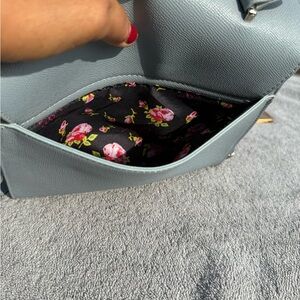 NWT! Betsy Johnson Devin Satchel Top Handle Crossbody Bag Blue Bow Chain Strap