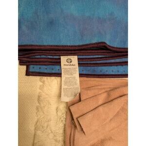 Bundle of 3 Lululemon and 1 Manduka yoga towels. All have been used but are in good condition. Manduka comes in a tie dye blue/purple color, Lululemon comes in 2 different pink shades as well as a black spotted print. Perfect to put over your yoga mat during your hot yoga classes!