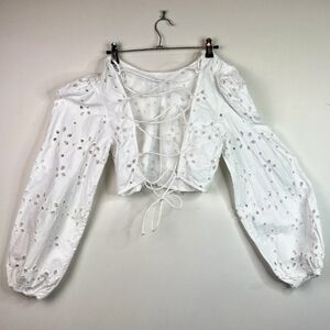 Zara Women’s White Crochet Eyelet Tie Back Cropped Top Size XS