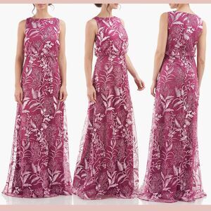 NWT JS Collections [ 16 ] Rita Floral Embroidered Blouson Gown Cerise/Mauve Q982