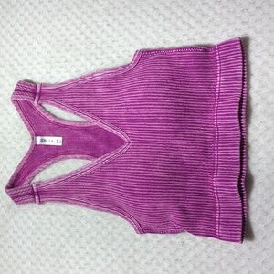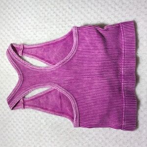 Zenana Stone Wash Racerback Bralette. Size S/M. New in package, never worn, no damage. Berry purple color with a stone washed finish. Racerback. Removable padding. Ribbed texture. Very soft and comfortable. Thick quality fabric with a lot of stretch. Will fit anyone from 32A to 36D.