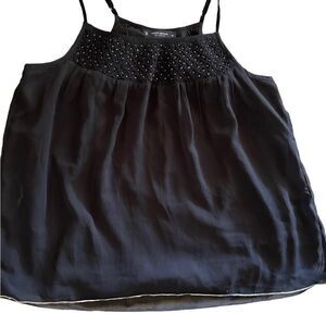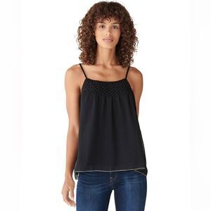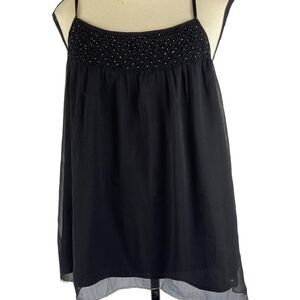 Lucky brand black silver flowy sheer smocked camisole w/gold trim hem sz M