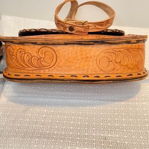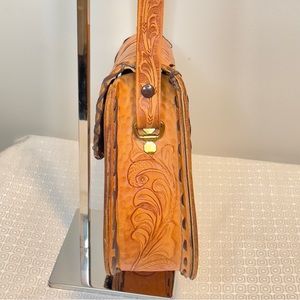Vintage Hand Tooled Leather shoulder hand bag 1970's