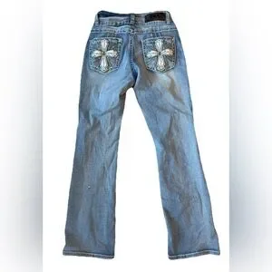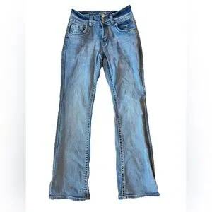 Sky Premium Collection Cross Embellished Boot Cut Jeans Women's Size 7/8 Blue