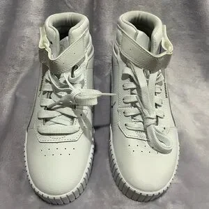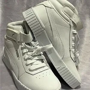 Sleek white high-top sneakers by Puma. Ideal for casual wear. New. Never worn.