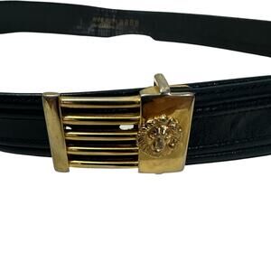 Excellent Vintage Condition. Great belt with gold tone buckle with small lion on it. Length 27-29 Width 1 inch