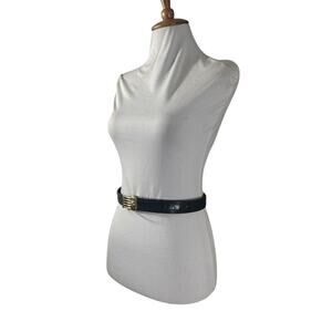 Vintage 1980s Anne Klein NAvy Blue Leather Belt with Lion Buckle S/M