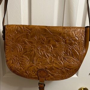 Patricia Nash Floral Embossed Brown Crossbody Bag